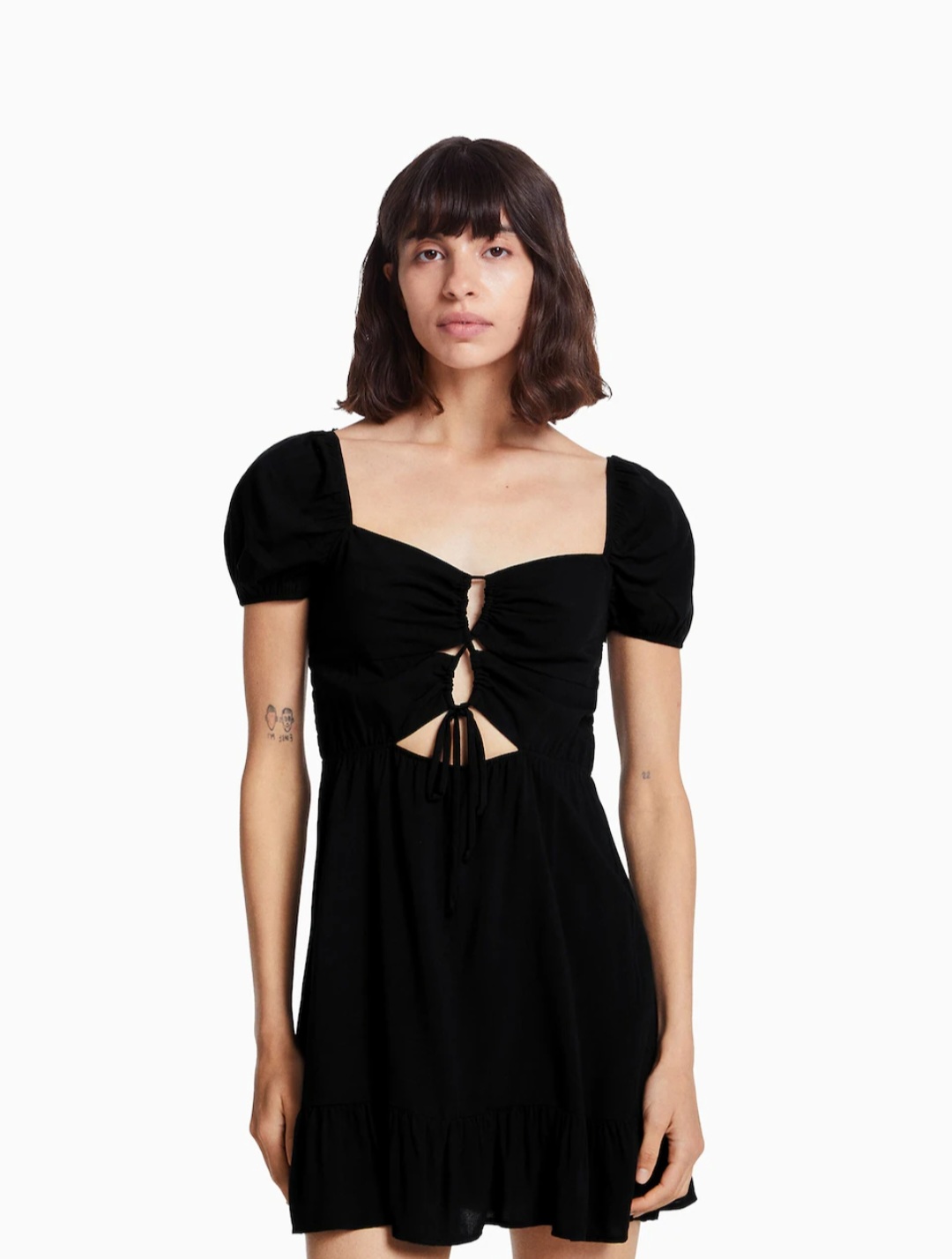 این پیراهن زنانه کوتاه با طراحی مدرن یقه گرهای و آستینهای پفی، یکی از جذابترین مدلهای امسال است. رنگ قهوهای مشکی و سفید ، یک انتخاب شیک و مینیمال برای استایل روزمره، مهمانی و حتی قرارهای دوستانه است.
