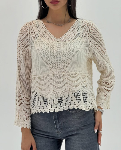 شومیز مجلسی بافت مکرومه وارداتی